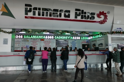 次に、その翌日のメキシコシティからグラナファト(Guanajuato)行きのバスの空き状況を「Primera Plus」の窓口で聞いておく。乗る便の時間はまだ確定できないし、座席はどのバスもまだ余裕があるみたいなので今日はチケットを買わないことにした。