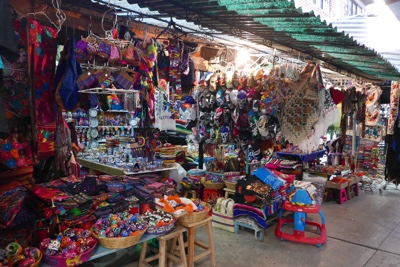 この広場から今度はミニバスに乗って中央市場前(CENTRO MERCADE)まで行く。すごくオンボロのバスだし、ドア開けたまま走ってるし・・・。1人7ペソ。