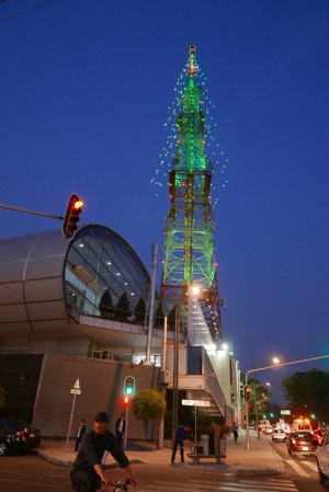 食べ終わると、「Televisa」という地元のTV局の横を通り、Arena Méxicoに向かった。クリスマスシーズンだからなのかTV局の鉄塔もクリスマスカラーになっていた。