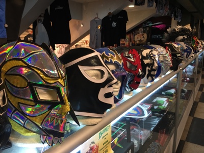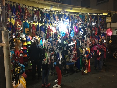 Arena Méxicoの周りには日本の祭りの夜店みたいな感じでルチャ・リブレの覆面マスクやいろんなグッズを売っていた。