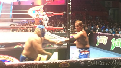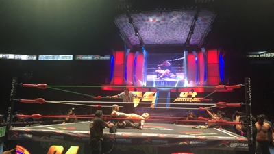 ボクたちの席はリングから2列目で超近くて迫力満点。ナマでプロレスを見た事がないので大興奮だ。TV中継もやってて音楽や照明も目まぐるしく変わり、ショーとして楽しい。ガチの格闘技ではないと分かっていても、タイミングよくジャンプとか技を繰り広げていて凄いなと思う。ちょっと年齢高めのおっちゃん日本人レスラーやイカツイ覆面レスラー、女子レスラーなど多彩な選手たちのプレーはとても楽しかった。
