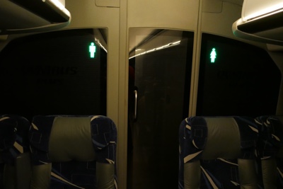 朝早いので人があまり乗っていない。トイレはあるが軽食等はなかった。チュロスを買っておいて正解だったな。