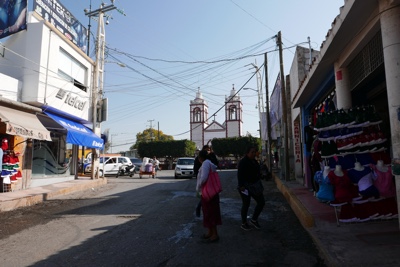 モロレス市場の横を歩き、メキシコのメジャーなコンビニOXXO(オクソー)の横を通るとサンアントニオ教会が見えてくる。