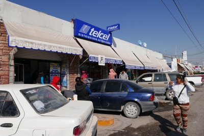 教会の手前を左に曲がるとtelcelがあり、その先にバスターミナルというか駐車場がある。