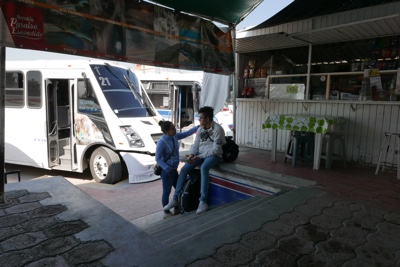 明日はトランドンゴという温泉に行く予定だ。そのためにはまずはイスミキルパン(Ixmiquilpan)という街まで行く必要があり、「OVNIBUS」でイスミキルパン行きの07:00出発のバスを予約した。「06:45までにはココに来てね」と言われた。
