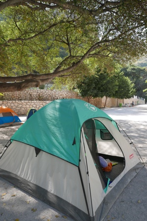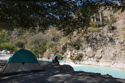河原のそばにある受付でテントを借りる。1泊100ペソだ。「泊まるのか?ならば温泉のチケットは2日分必要だぞ。」と言われた。ボクたちは今日の分の入場チケットしか買ってないのだ。しかし明日は早朝出発で温泉に入る時間は全く無い。「明日は7時には出発するので温泉には入れない。なので1泊分で。」と言ったらOKしてくれた。