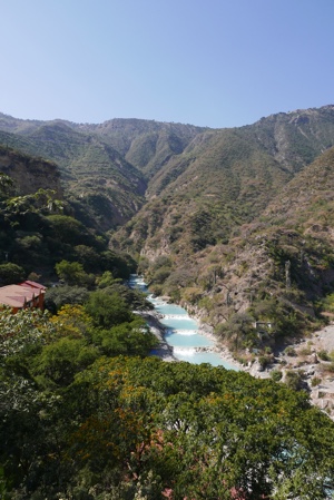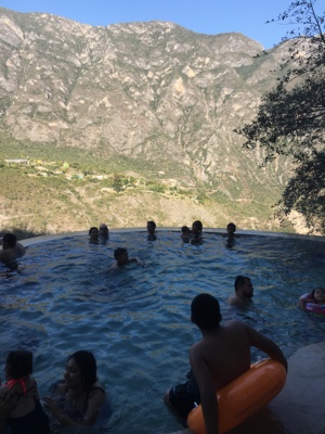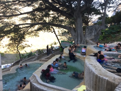 湯船に使って眺める渓谷の景色は確かに絶景で雄大だった。ただね・・・芋洗状態なのですぐに引き返すことにした。帰りの乗合バスは4人だけだったので1人15ペソとなった。