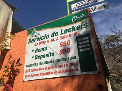 ボクたちはテントの中で水着に着替えてまず洞窟と滝の温泉に行くことにした。貴重品とタオルを持って途中のロッカーに寄る。夕方まで預かってもらってロッカー代とデポジット代を合わせて100ペソだ。