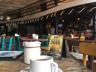 12時にチェックアウトをして、まだ早いけれども海辺のレストランに行く。