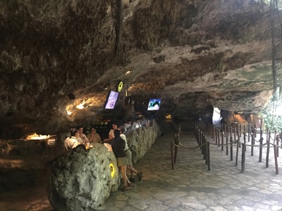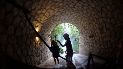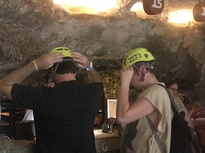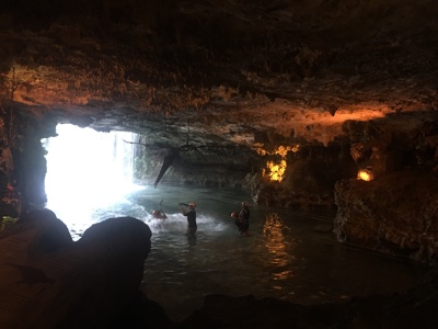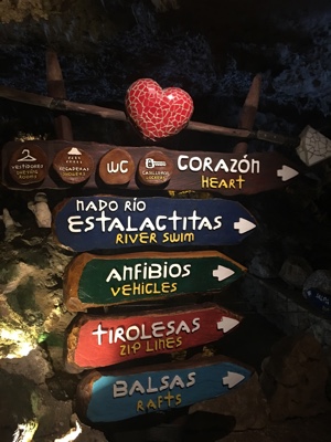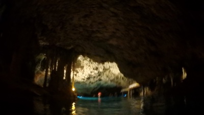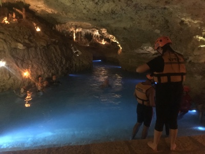 洞窟の中にある川で泳いだり、ビーチ板みたいなカヌーを漕いだり、ウォータースライダーを滑ったり・・・ずぶ濡れになっても楽しい。