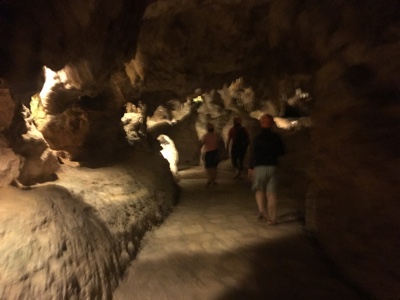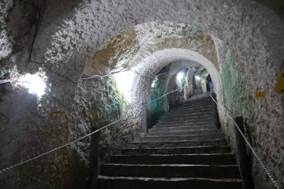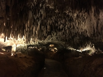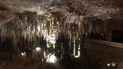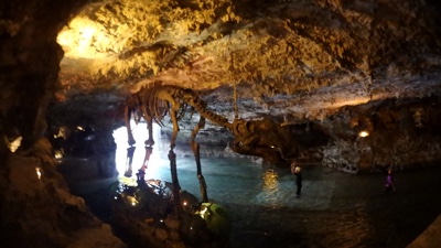 ライトアップされた洞窟を進んで行くと、絶景が広がる。