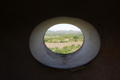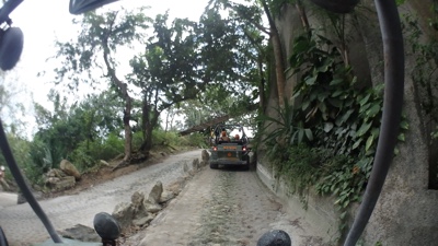 雨が止んでバイクで出発。途中から道が舗装していないためボコボコの砂の道で2人乗りだと危険だ。