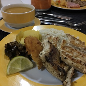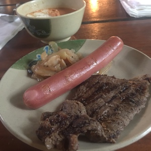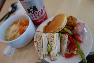 ジップラインを何本かやったあと、レストランに来た。ビュッフェで好きなものを食べることができる。