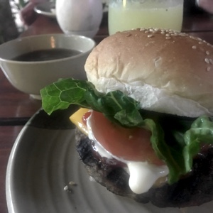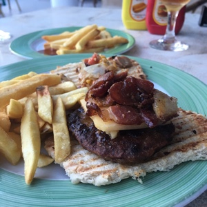 ホテルに戻ってバギーを返却し、「SNACKBAR」でビールとハンバーガー。ハンバーガーには見えないけれどね。