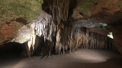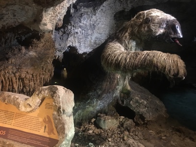 洞窟の中の恐竜の骨。雰囲気あるね。