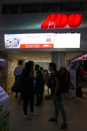 ADOバスターミナルに行き、明後日の朝7時に出発のカンクン空港行きバスチケットを2人分購入しておく。380ペソ。
