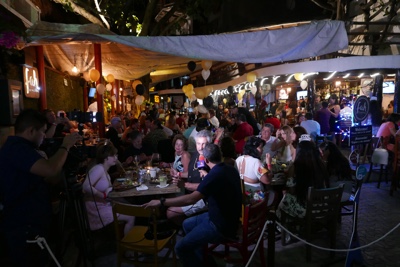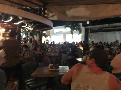 少し散歩。海の側のバーも盛り上がっている。
