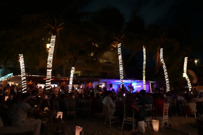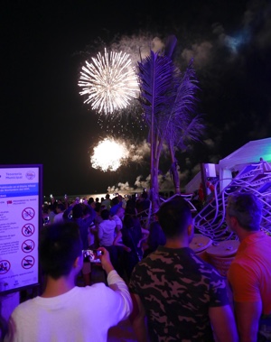 ビーチに行くとたくさんの人たちが花火を見ていた。