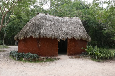 マヤ人の当時の暮らしを再現したという住居もあった。
