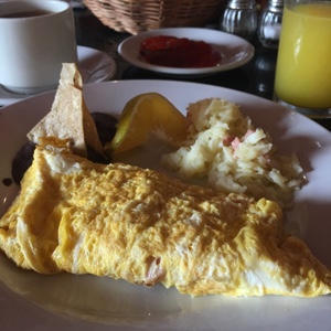 朝食はメニューの中から選べることができ、ボクはホットサンド、嫁ちゃんはパンケーキを注文。美味しかった。