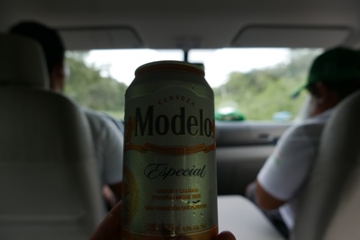8時ころにチチェン・イッツアを出て朝食を食べるレストランに向かう。ドライバーから「これ飲んでいいよ」とビールをもらったので車の中で飲む。ギンギンに冷えている。