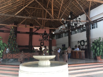 プラヤデルカルメンで宿泊している「Siesta Fiesta Hotel」はこんな感じだ。流石にこの時間は演奏していないので静かだ。