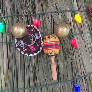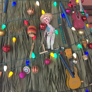 入り口のクリスマスツリーの飾りはなかなかシュールだ。