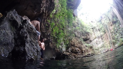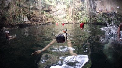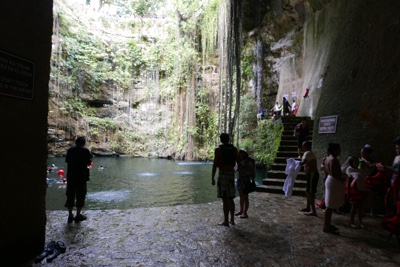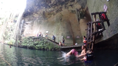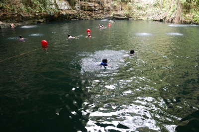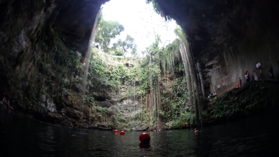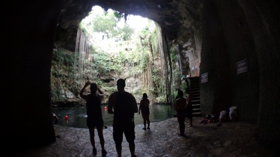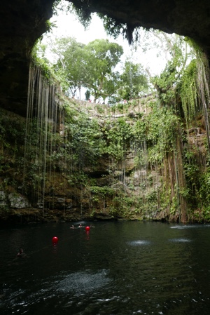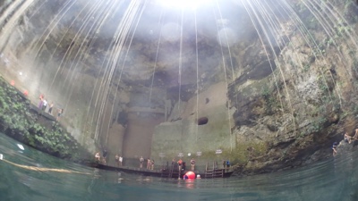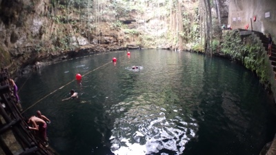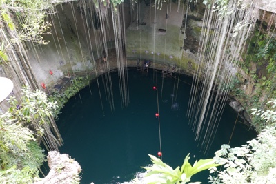 地面にぽっかりと開いた穴、その下に広い空間と水、こういうセノーテがメキシコにはたくさんある。すごいね。