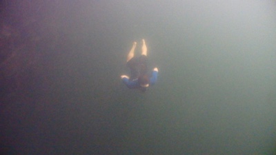 太陽が出ていないので水が冷たいし、水中が暗い。