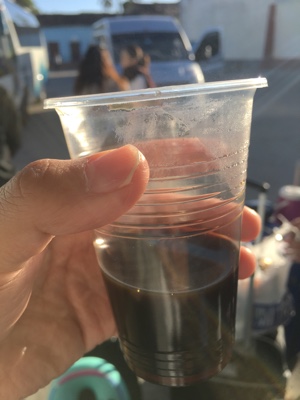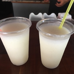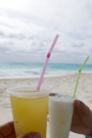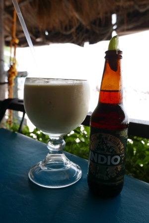 海の家的なところで休憩。フルーツシェークと黒ビールがチップ込みで234ペソ。