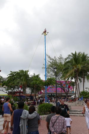 4人の男たちが高いポールの上からグルグルグルグル回りながら降りてくる。すごいよね。