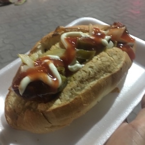 食べようと思っていた人気のピザ屋に行ったら本日は休みで残念。歩いていると行列ができている「EURO GRILL」というホットドッグの店があった。