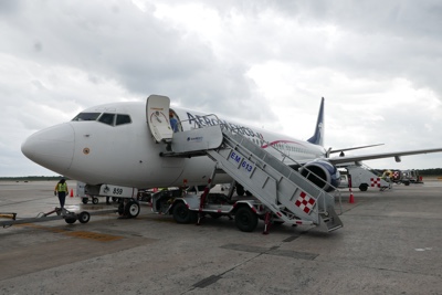 7:30にカヨ・ラルゴの空港「ヴィロ・アクーニャ空港(Vilo Acuña Airport)」に着陸。飛んだのは30分くらいか