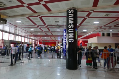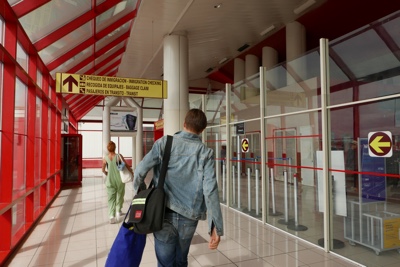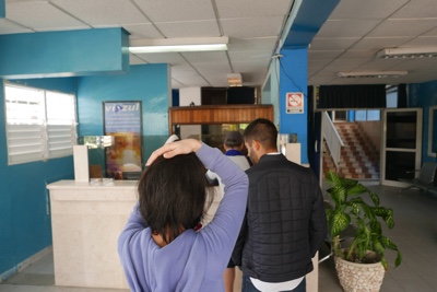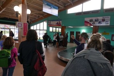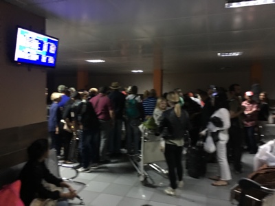 バスに乗ってバゲッジクレームへ行き荷物を受け取った。迎えのCUBATUR(クバツール)のバスはまだ来ていない。仕方なくピックアップが来るまでロビーで待っていた。おばあさんが椅子に座っていたら横に体の大きな女性が座ろうとし、椅子が壊れていたようでバランスが崩れておばあさんはすってんころりん!ボクも含めて周りのみんながビックリしてすぐに助けた。