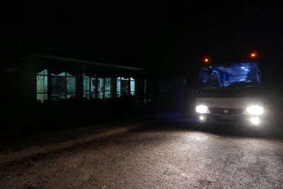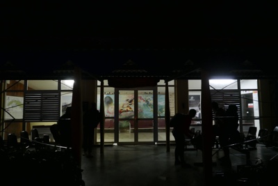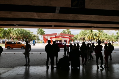 他のホテルを周って客をピックアップしていき、4:10に小さな空港に到着した。「プラヤ・バラコア空港(Playa Baracoa Airport)」だそうだ。小さっ!そして真っ暗!空港の入り口は鍵がかかっていて入れない。なんだそれ・・・。