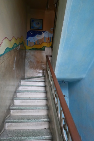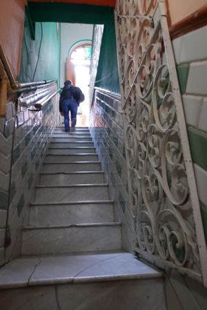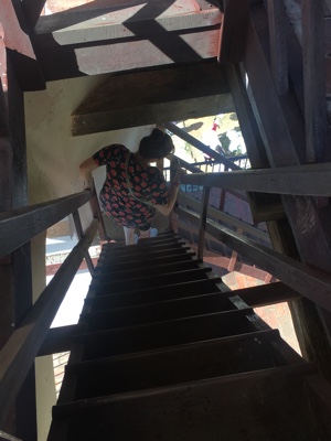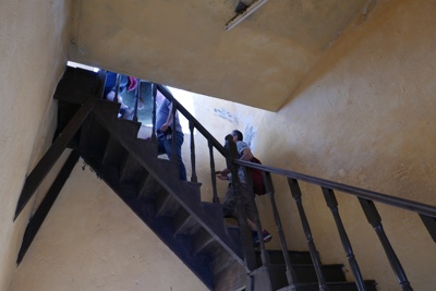 螺旋階段で、上までグルグル登る。しんどいww