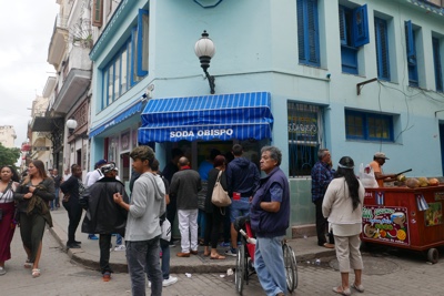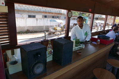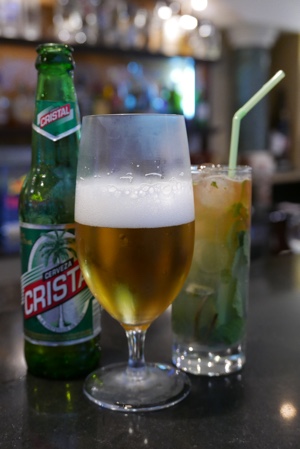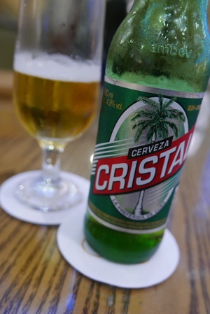 「SNACK BAR」でビール休憩。グラスに口紅がついてる。さすがキューバクオリティだな(笑)。