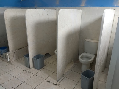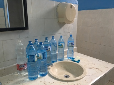 空港の待合室のトイレに行く。個室には鍵がかからないし、便座もないし、流すレバーもないし・・・。