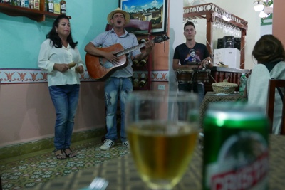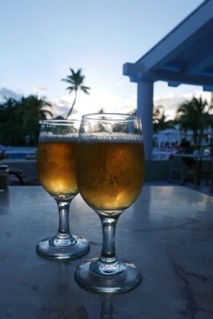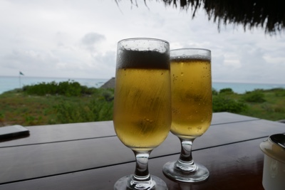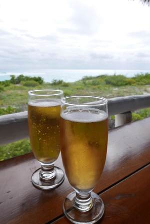 ビールを飲んでビーチを眺める・・・のんびりと幸せを満喫している。店の外では現地の父娘が演奏して歌っている。娘の歌声はとても美しかった。
