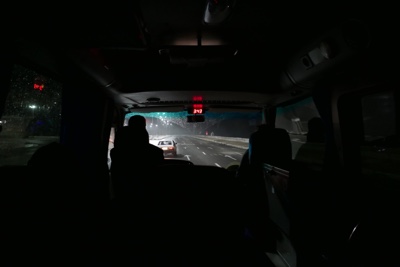 外がすごいスコールの間、iPadで「ウォーキングデッド」を見ながら時間をつぶす。17:40にやっとピックアップだ。