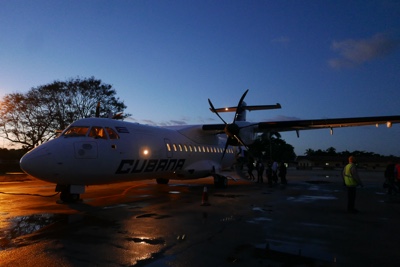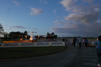 19:35頃に着陸した。あれ?なぜかハバナ国際空港に着陸したぞ。出発した時の小さな空港と違う。