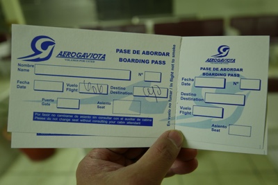 AEROGAVIOTA航空の飛行機に乗る。小さなプロペラ機でカッコ良いな。