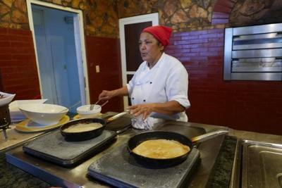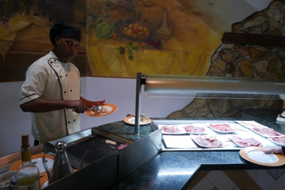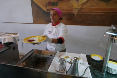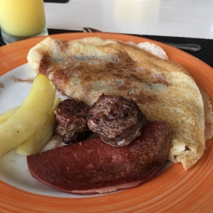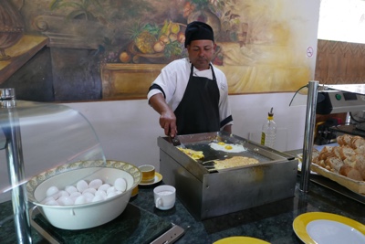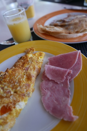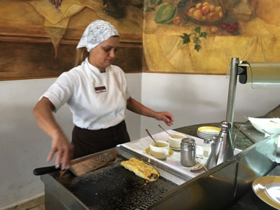 レストランで朝食。今日のクレープ担当の人は初心者らしくて昨日のおばちゃんほど手際が良くない。ぶにゅっとしてあんまり美味しくなかった。