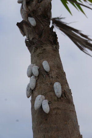 夕方に少し散歩。この木にとまっているものは何なのだ?ヤドカリ?