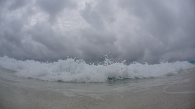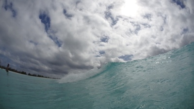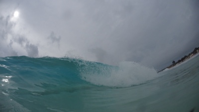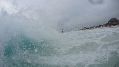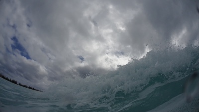 あまり深くない場所まで水中カメラを持って海に入る。危険がない範囲だと波が高いのも楽しいね。