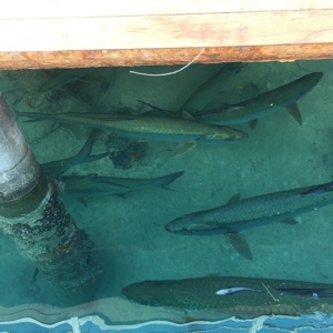 近くにハーバーがある。海の中をのぞいてみると・・・巨大な魚だ。1m以上あるよ。