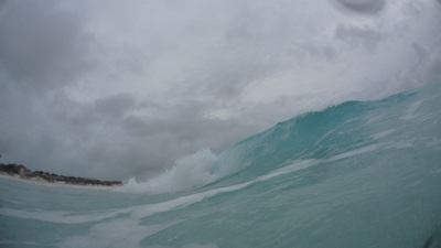 波は高いけれども海の色はメチャメチャ綺麗だ。去年行ったモルディブにも負けてないかも。