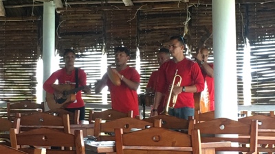 テキーラとかチョコレートなどお土産を買って一旦ホテルに戻った。プラヤデルカルメン最後の日なのでホテルのレストランで生演奏を聴きながら一杯飲むことにする。各自の演奏が終わったらテーブルに来てチップを集めて、次の演奏者が舞台にあがる。ちなみに20ペソほどチップを渡した。