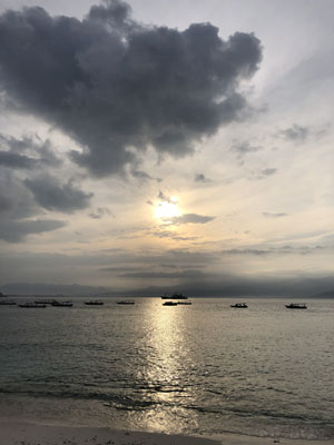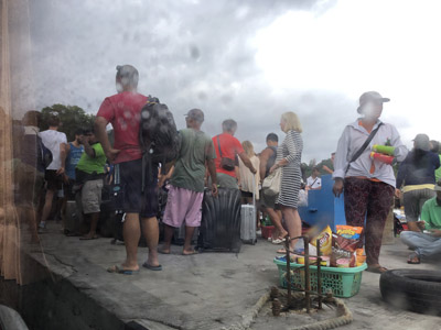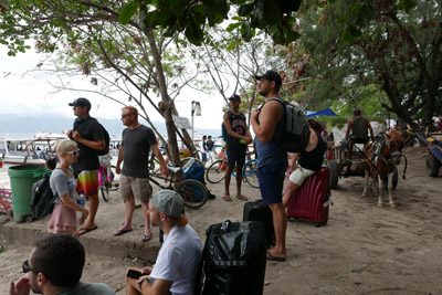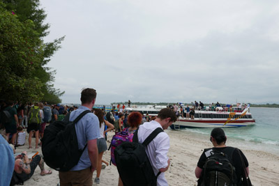 ギリメノ、ギリアイルの島には沖に停泊してイカダ船で乗り降りしていた。そして15時前にパダンバイに到着した。ボクたちも行きに乗船した町だ。ここでほとんどの人が降りていく。その後15:50頃にレンボンガン島に寄港した。