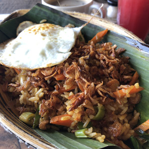 ホテルのレストランで朝食。ボクはナシゴレンを注文。嫁ちゃんはフレンチトーストだ。美味しそうなんだけれども今日も食欲は無くちゃんと食べられない。